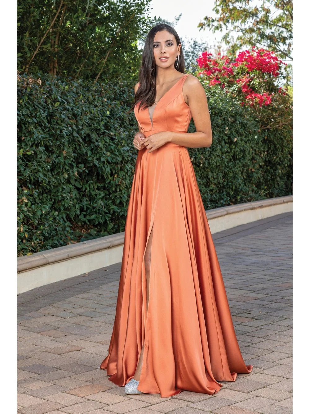 This Gown is an Elegant Satin Evening Gown with Plunging Back and Full Skirt Prom Dress